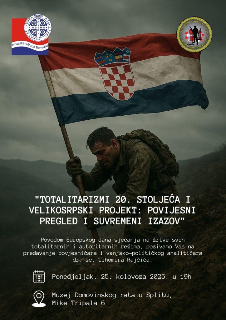 Povodom Europskog dan sjećanja na žrtve svih totalitarnih i autoritarnih režima, Muzej Domovinskog rata u Splitu i Hrvatska udruga Benedikt pozivaju Vas na predavanje povjesničara i vanjsko-političkog analitičara dr. sc. Tihomira Rajčića: